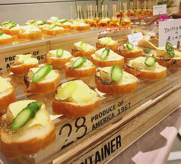 旬のアスパラに、炙られてとろっとしているチーズを合わせたカナッペになります。