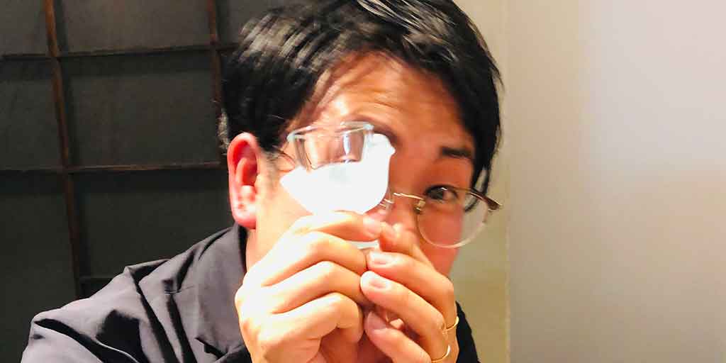 会食中の柴田。おちょこが鳥の
