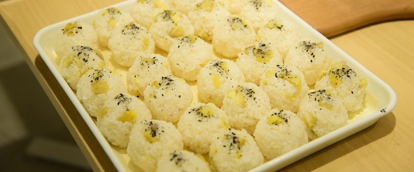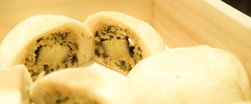 島根県の海士町で作られた「本氣米」と「あかもく」という海藻が包まれた食事系おやきと摘果された煮りんごと国産のあんこを閉じ込めたスイーツ系おやき。