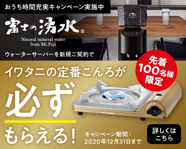 おうち時間を充実してほしいとう思いからこの度、ウォーターサーバーを新規ご契約でイワタニの定番こんろが当たるキャンペーンを開催し、先着100名様にプレゼントいたします。