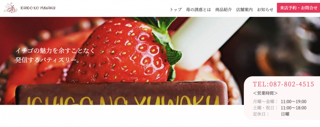 香川県高松市にある苺のスイーツ専門店「苺の誘惑」様のWebサイトを制作いたしました。