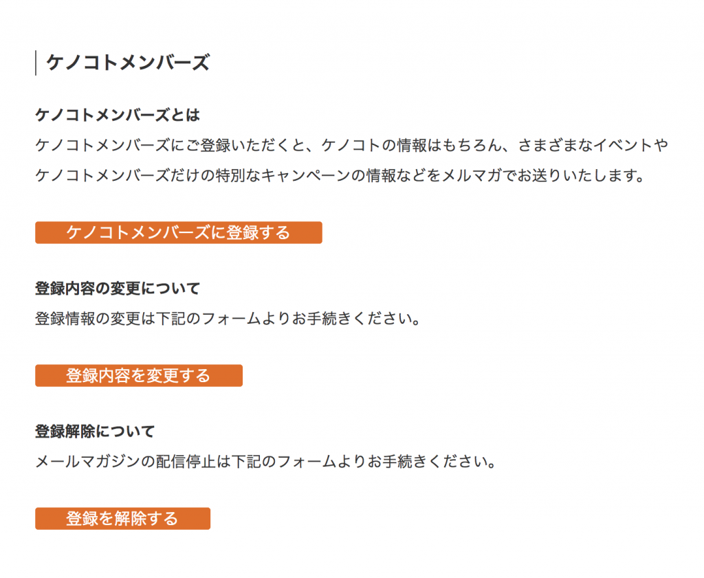 ケノコトメンバーズにご登録いただくと、ケノコトの情報はもちろん、さまざまなイベントやケノコトメンバーズだけの特別なキャンペーンの情報などをメルマガでお送りいたします。