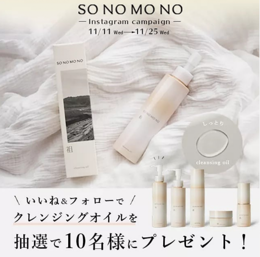 弊社がマーケティングサポートを行っているCHAIN株式会社様(本社:大阪府大阪市)が手がける基礎化粧品ブランド『SONOMONO』が期間限定で、Instagramキャンペーンを開催しております。