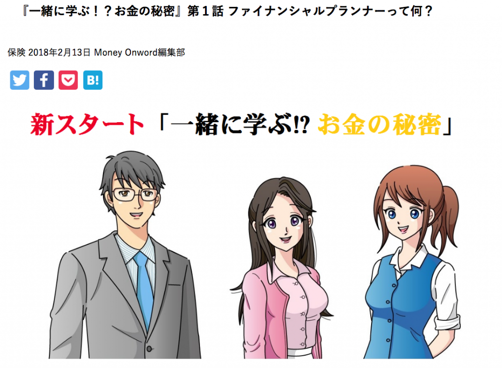 上記のように、ストーリー仕立てで楽しく学べる記事や、「ニュース、お金、保険、起業、不動産、投資、介護、転職、妊娠・出産、老後・相続、女性、副業、個人事業主」に分かれたカテゴリーごとの記事も配信していきます。